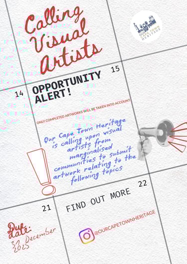 Our mission is to preserve the heritage and culture of the Cape by exploring visual art and history through educational and youth-focused initiatives. Reclaiming the narrative of Cape Town’s diverse heritage by 'decolonizing the art world' to enhance accessibility and storytelling. We are committed to empowering communities and marginalized artists by showcasing their artwork in engaging exhibitions and across our platforms.