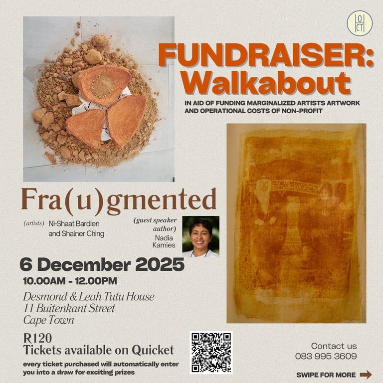 On Saturday, 6 December 2025 at 10:00am, we warmly invite you to participate in our targeted 'FUNDRAISER', a ticketed exhibition walkabout designed to support marginalized artists in bringing their creative visions to life. The proceeds from this event will also aid and enable our nonprofit organization to further its mission of empowering communities to share their unique stories and histories while preserving cultural heritage. Your involvement will play a crucial role in providing an inclusive environment where diverse artistic expressions and histories can thrive, and it will also help us meet operational costs, including necessary audits to ensure our organization remains eligible for future funding, enabling us to help and aid more artists, communities, and youth.