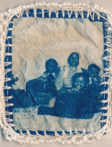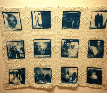 Images from my family and important religious/cultural occasions sunprinted onto my family's old tablecloth