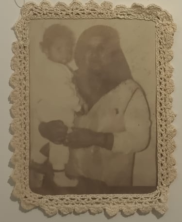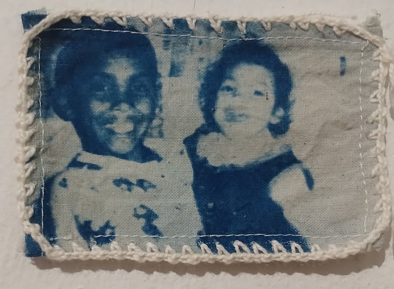Kallitype of my maternal grandmother and my eldest brother on cotton paper. She actively crocheted and knitted, therefore the crochet border pays tribute to her domestic crafts