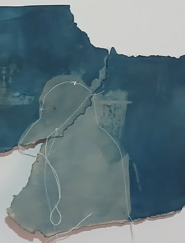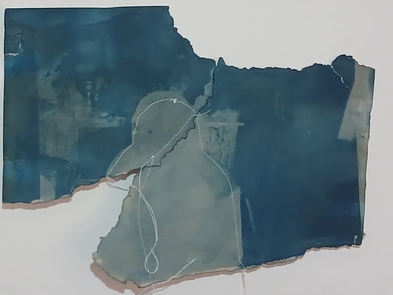 Rakams, Cyanotype onto fabric with crochet & embroidered elements