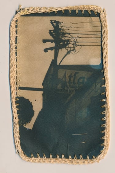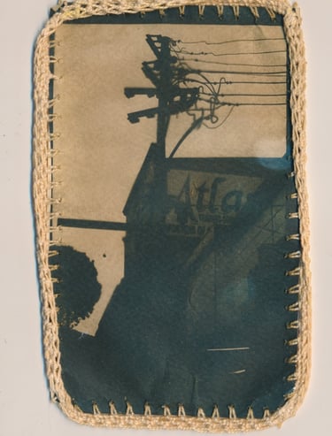 Atlas, Toned cyanotype onto cotton paper with crochet border