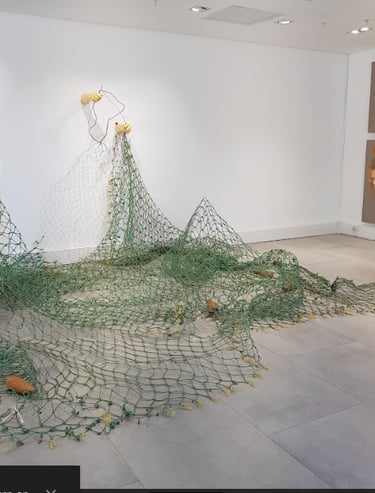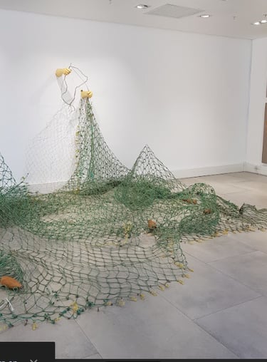 Trek Nek, Fishing net, copper wire, date seeds, District 6 clay, glass bottles