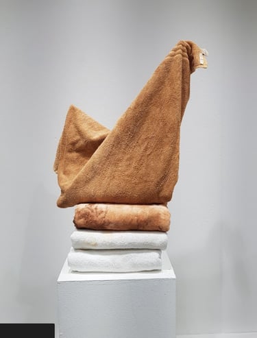 Pristine white bath sheets from an affluent hotel owned by colonial settlers, stained with the clay from D6
