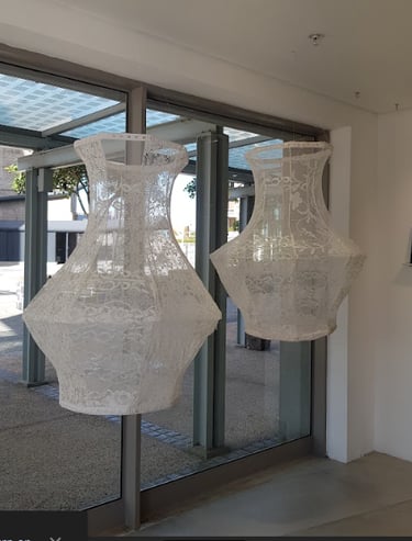 Ourboros (Advantage of Liminality), District 6 clay, canvas, thread, needles, paper, doilies, curtaining