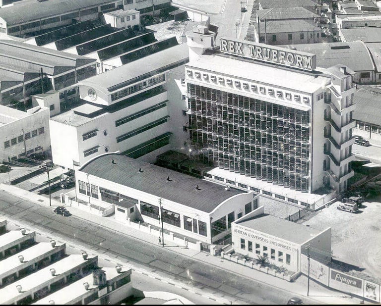 As the industry gained traction, clothing factories started sprouting up in Cape Town during the mid century such as Rex Trueform (1938), Bonwit (1967) and House of Monatic (factory operations from 1951). In the clothing and textile industry there are two integral factors which influence the site of production: proximity to a labour force and to the market. Even though sites such as Paarden Eiland, N’dabeni and Kensington/ Maitland had the capacity to build clothing factories, their placement on the periphery of Cape Town meant that production would be hindered. Salt River, therefore became the city’s ideal location for clothing production. Salt River and its adjacents offered quality labour in the form of white and coloured skilled workers, and the land below Devils Peak (exhausted brick fields) were cheap and flat, which meant factories could be easily erected. Thus, Salt River Main road, Durham Avenue, Shelly Road, and Swift street were showcasing architectural symbols of the garment industry.