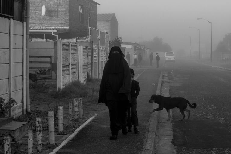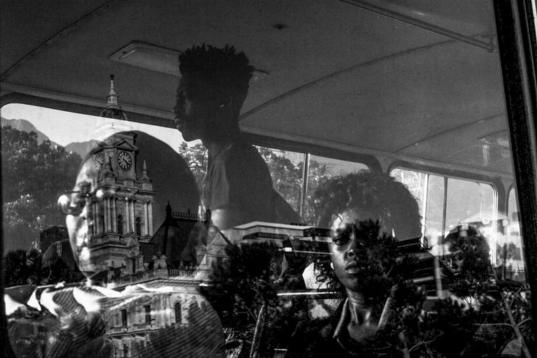 Floris’s photographic work arises from the daily commute between the margins and the centre, a journey influenced by the legacy of forced removals and Apartheid spatial planning. Cape Town stands out from other cities globally due to the displacement of the working class, who have been pushed further from the city centre despite the majority of their employment being located in the Central Business District (CBD). In contrast, in many other countries, the working class typically resides closer to their workplaces in the inner city, while affluent populations occupy the more distant suburbs. Floris’s photographic series, originally titled "Work before Work," goes beyond traditional themes of apartheid and inequality. It ventures into a more atmospheric space, where history intertwines with the present, not solely through policy or geography but also through emotion, gesture, and absence. What does it mean to yearn for a life that was never permitted to exist? His work alludes to the unseen labour of waking up before dawn to enter a city designed for exclusion. In Cape Town, where working-class communities continue to be marginalized, this journey transcends the physical. It becomes generational, emotional, and symbolic.